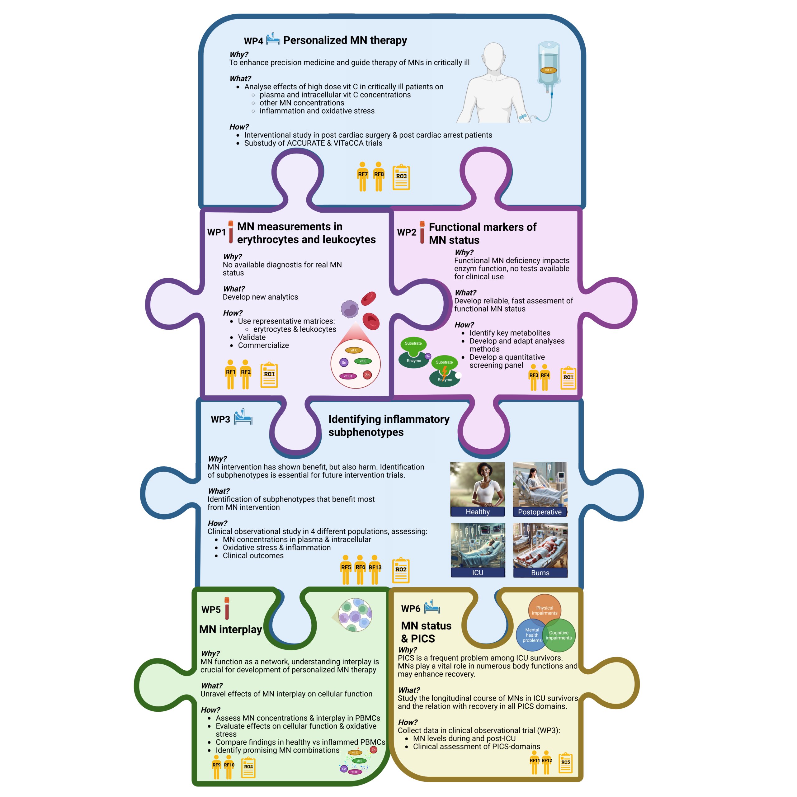 WP6 aims to characterise micronutrient and electrolyte status during the recovery phase after critical illness. It seeks to analyse trajectories of micronutrients and electrolytes in relation to physical, cognitive and psychological outcomes across PICS domains and long‑term clinical endpoints.